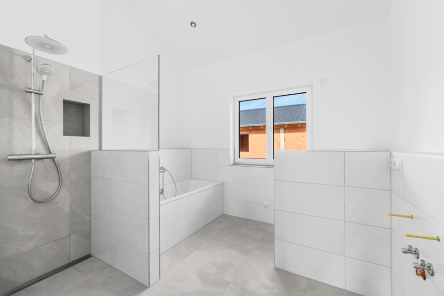 Die Bilder, die Sie sehen, stammen aus unserem Musterhaus – und zeigen Ihnen genau, was Sie erwartet. Bitte beachten Sie, dass einzelne Aufnahmen optionale Sonderausstattungen zeigen können; verbindlich ist der Inhalt der Baubeschreibung.