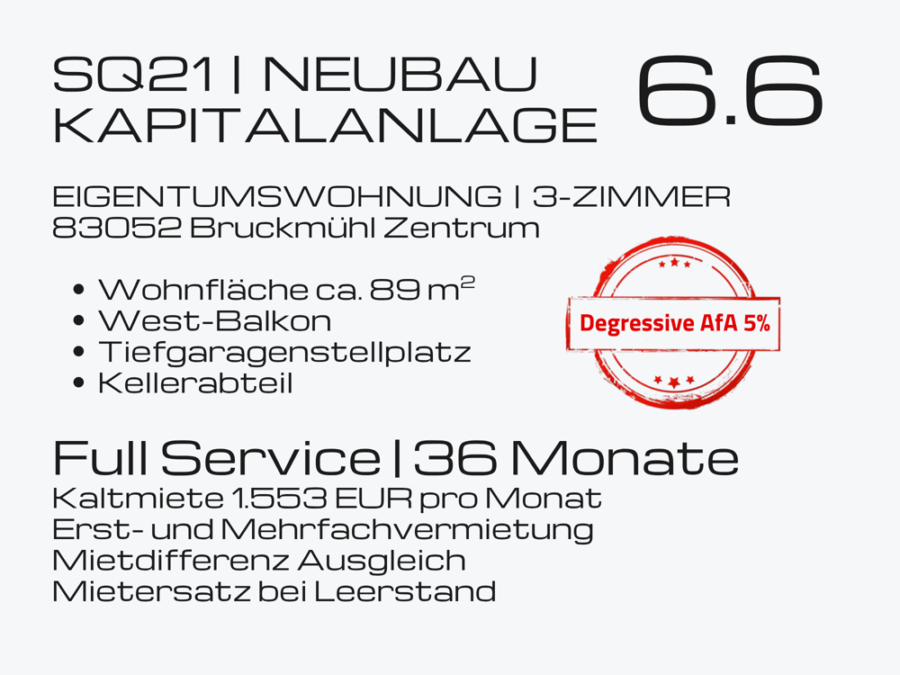 Startseite » Immobilien » SQ21 NEUBAU | Kapitalanlage – Bruckmühl Zentrum, 3-Zimmer OG, Balkon, Tiefgarage, Aufzug, Keller